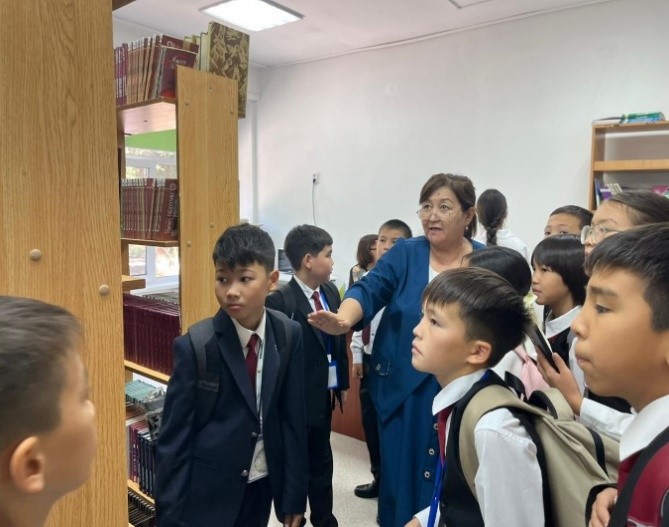 Кітапхана меңгерушісі А. Е. Мурзашева мектепке жаңадан қабылданған оқушыларды кітапханамен таныстыру мақсатында «Кітапханаға саяхат» шарасын өткізді. Оқушыларды кітапхана қорымен ондағы жұмыстанып жатқан жобалар туралы мағұлұмат беріп, көркем әдебиет оқуға бағыттады. Оқушылар Коворкинг орталықтағы әдебиеттер мен анықтамалық әдебиеттерді, кітап көрмелерін қызықтап өздеріне жақсы әсер алды.